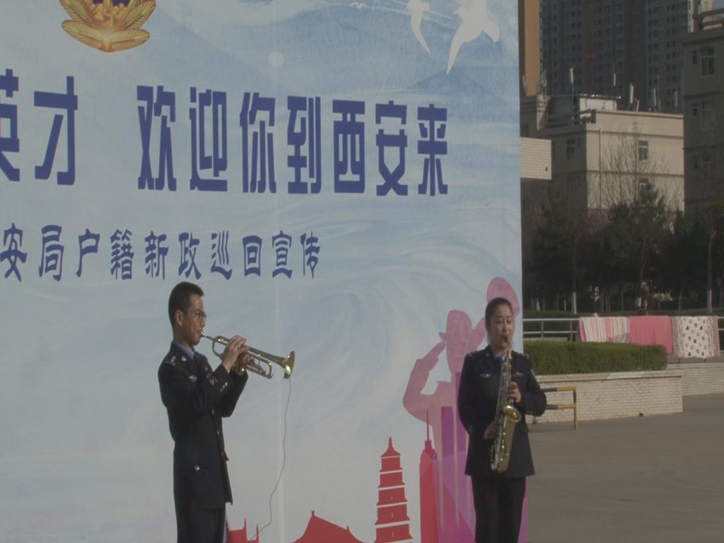 活动现场,长安分局户政窗口民警详细介绍了户籍新政实施的背景,重点讲解了与学生有关的“学历落户”、“在校大学生落户”所需材料和办理流程,以及如何通过掌上户籍室办理各项业务。现场摆放的各类宣传展板吸引了大量学生的驻足围观,民警们现场交流互动,向前来咨询的学生答疑解惑,发放户籍新政宣传材料,郭杜派出所户籍民警现场为我校三名同学办理了户口迁移落户手续。西安市警官艺术团的民警们还带来了精彩的歌曲表演。